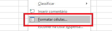 Primeiramente, selecione a célula desejada e a opção "Formatar células".