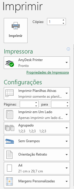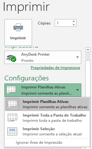 Clique na opção "Imprimir planilhas ativas" caso queira imprimir mais do que uma.