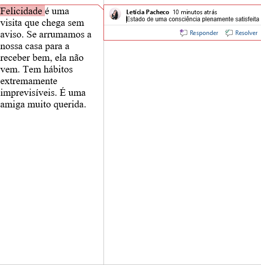Para fazer um comentário/anotação basta selecionar o texto que você deseja comentar, ir para a guia "Revisar" e clicar em "novo comentário". Digite o seu comentário. O word mostra seu comentário em um balãozinho na margem.
