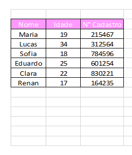 Assim como a planilha, a tabela nos mostra dados, porém, não fazemos cálculos, fórmulas ou qualquer outra grande alteração.