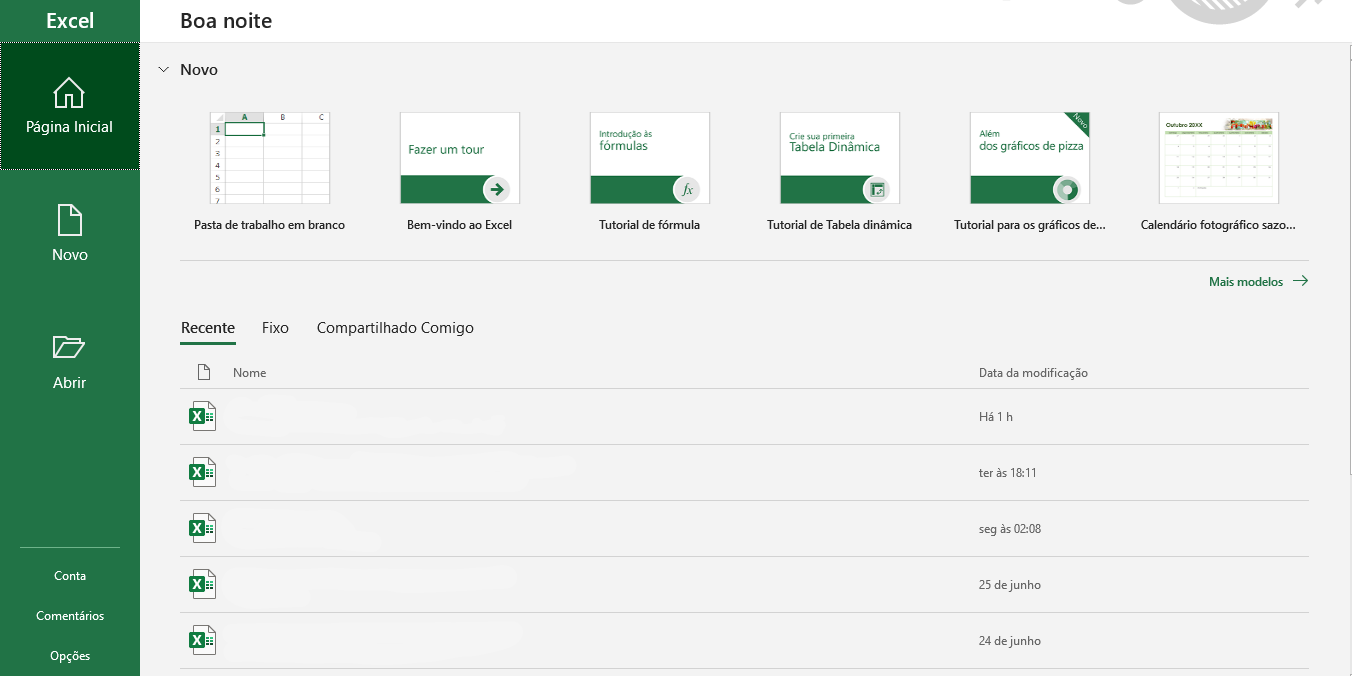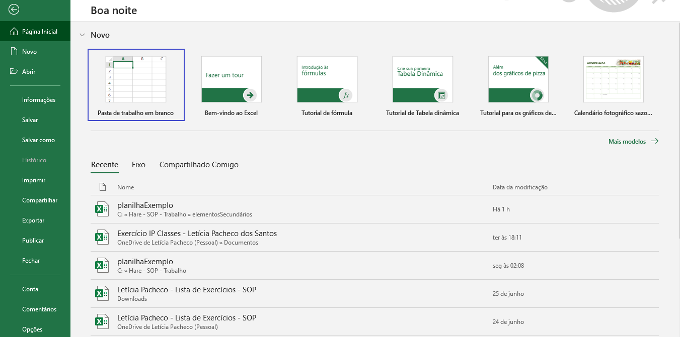 Selecione a opção "Pasta de trabalho em branco" para uma nova planilha.