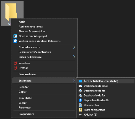 Para adicionais itens na área de trabalho, clique com o botão direito no arquivo ou pasta, depois vá em "Enviar Para > Área de Trabalho".