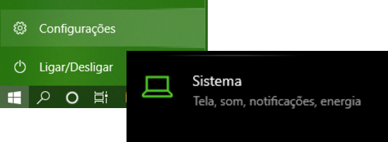 Para abrir as configurações do sistema, clique no ícone do Windows, depois vá em "Configurações". Após isso, vai ser aberta uma nova guia. Vá em "Sistema"