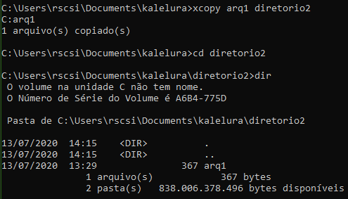 Para copiar tanto um diretório quanto um arquivo, é utilizado o comando "xcopy".