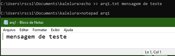 Já para criar um arquivo, o comando utilizado é o "dir >".