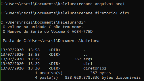 Para renomear tanto um diretório quanto um arquivo, é utilizado o comando "rename".