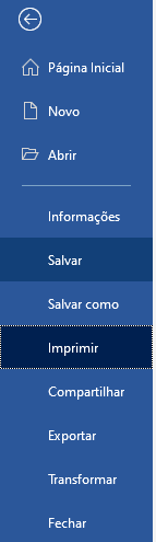 Para imprimir um aquivo, vá na guia de opções e clique em "Arquivo".