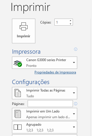 Se quiser, faça suas configurações e clique no ícone da impressora para imprimir.