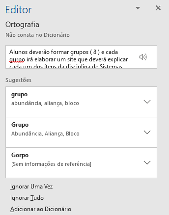 Após esse processo, clique em "Ortografia e Gramática".